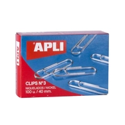 Apli Nickel‑Plated Paper Clips (Box 100 pcs) No. 3 40 mm